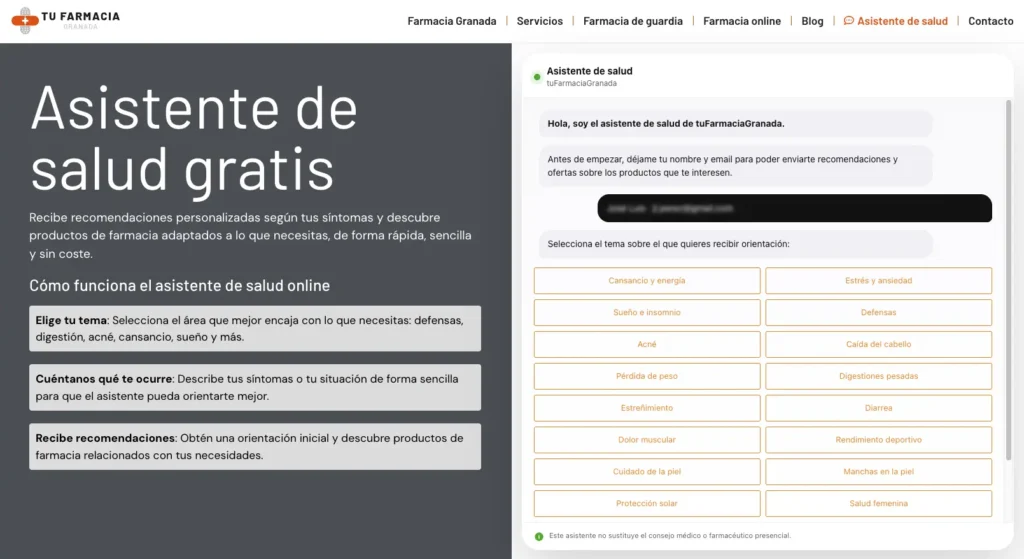 El asistente de salud de Tu Farmacia Granada es un buen ejemplo de esa forma de trabajar.